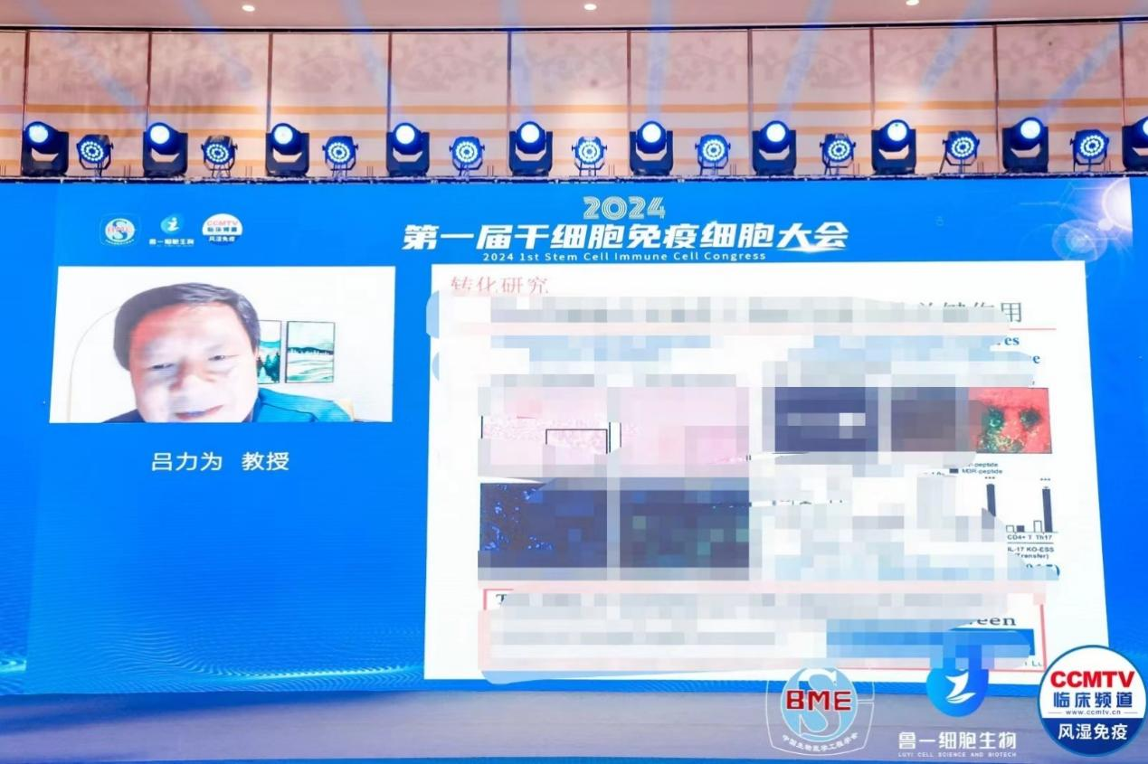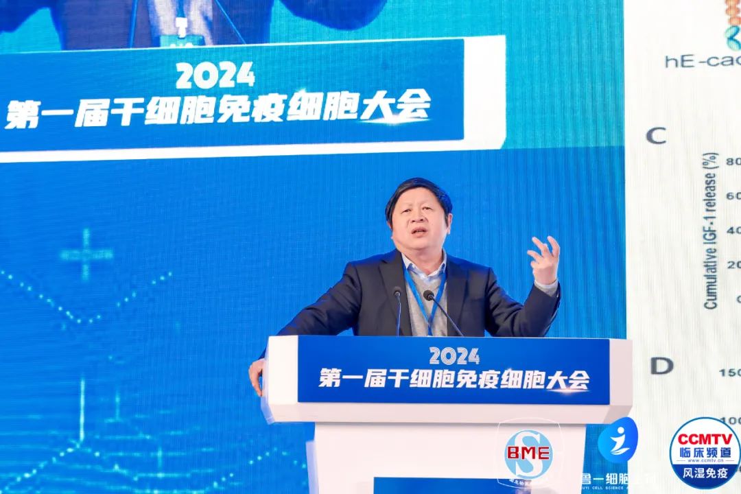多位国内外知名专家教授分别就干细胞与免疫细胞的最新研究成果、发展趋势以及在疾病治疗、再生医学、市场投产及应用等领域进行了深入的交流和探讨。首先演讲的是上海交通大学讲席教授、细胞和基因治疗研究院院长、创新免疫治疗全国重点实验室教授、PI、原美国俄亥俄州立大学雷诺德.韦斯勒终身讲席教授郑颂国教授,他分享的主题是:牙龈干细胞及其外泌体在RA治疗中的研究报告。